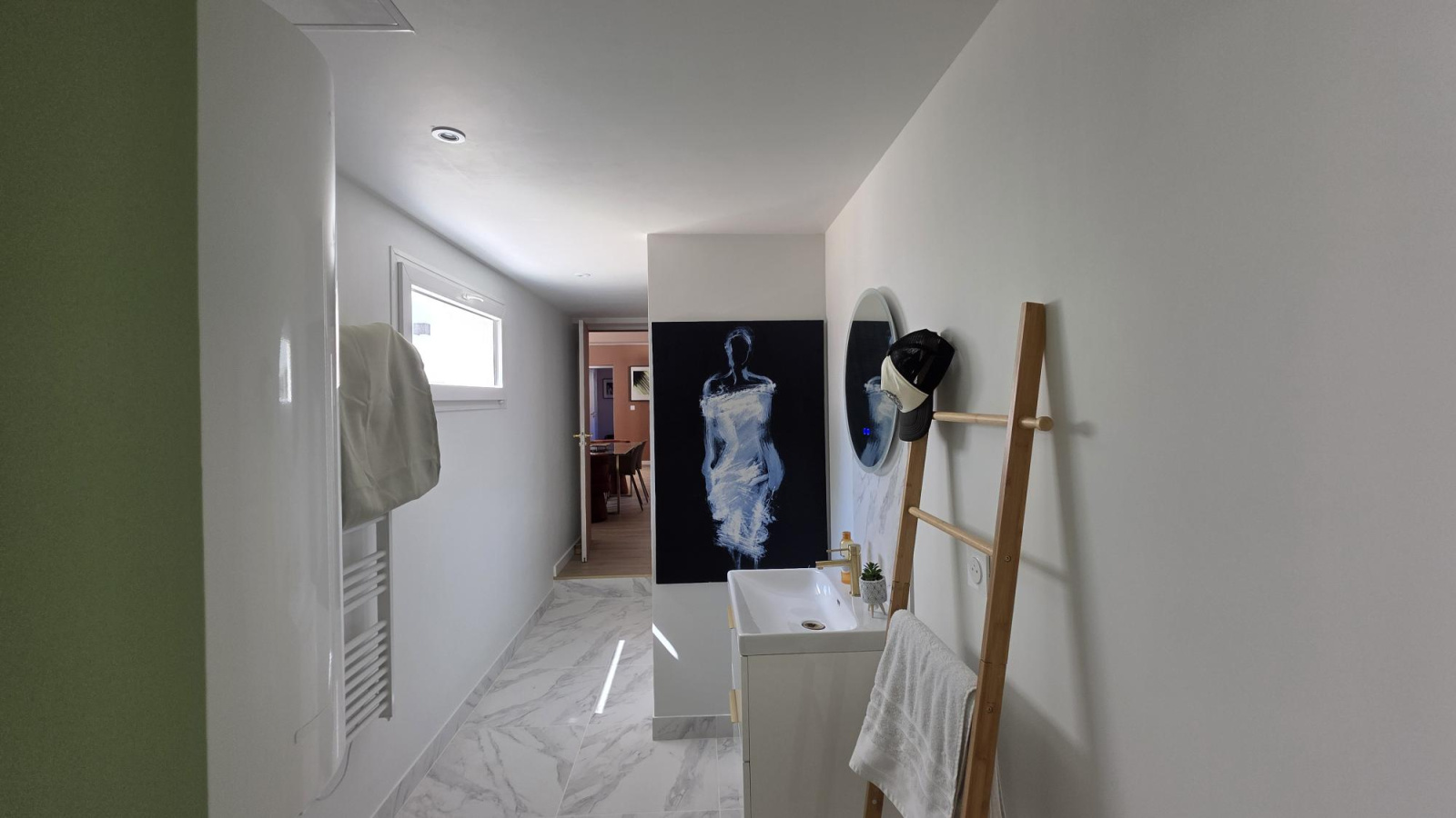 La troisième chambre attenante à la maison est aménagée en studio indépendant. Une solution idéale pour un adolescent en quête d’autonomie ou pour créer un revenu locatif complémentaire.